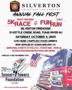 This is a day of fun-filled community events supporting the Silverton Volunteer Fire Company. It will include our 1-mile fun run and 5K, followed by the awards ceremony! The day will kick off with race check in at 8 AM, individuals can also do same day registration. The 1-mile fun run will start promptly at 9:30 AM. The 5K will follow with a start time of 10 AM. After both races end, our Annual Fall Festival will kick off starting at 11 AM featuring a variety of vendors, live music, raffles, food & drinks, vehicle extrication demonstrations and more! This event will provide much support for our fire department and most importantly bring the community together as a whole!